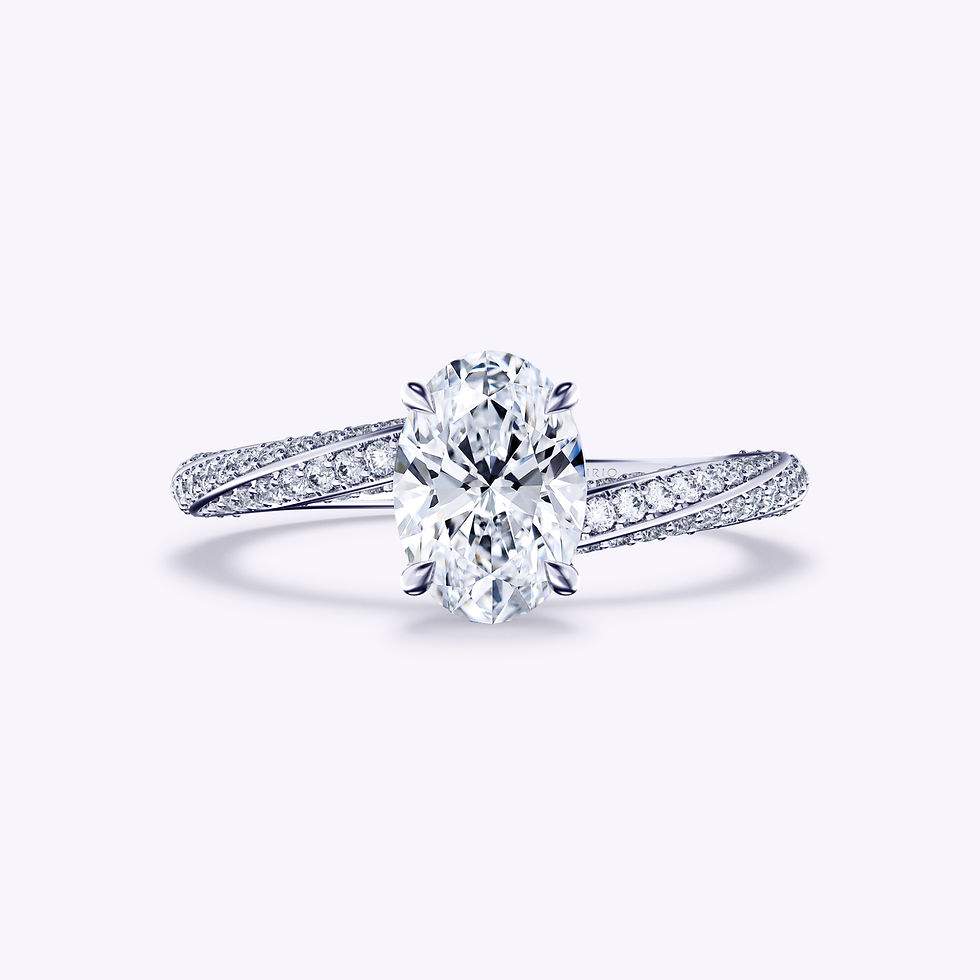 Featuring a luxurious design, this engagement ring has a central round diamond held in a six-prong setting, surrounded by a halo of smaller diamonds that extend onto the ring's band. The intricate arrangement of the stones creates a radiant and sparkling effect, enhancing the brilliance of the central diamond. Crafted in polished white gold, this ring combines traditional elegance with a touch of modern sophistication, making it a stunning choice for a truly special proposal.